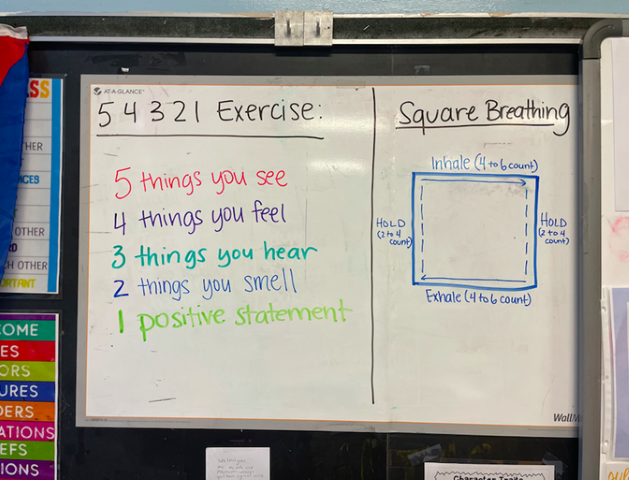 In addition, our entire community has been especially mindful this year in providing support to one another as we grapple with the hardships faced over the past two years. In the photo below, Ms. Vela offers her 7th graders small, yet powerful tips on how to maintain a healthy mind and being when feeling stressed.