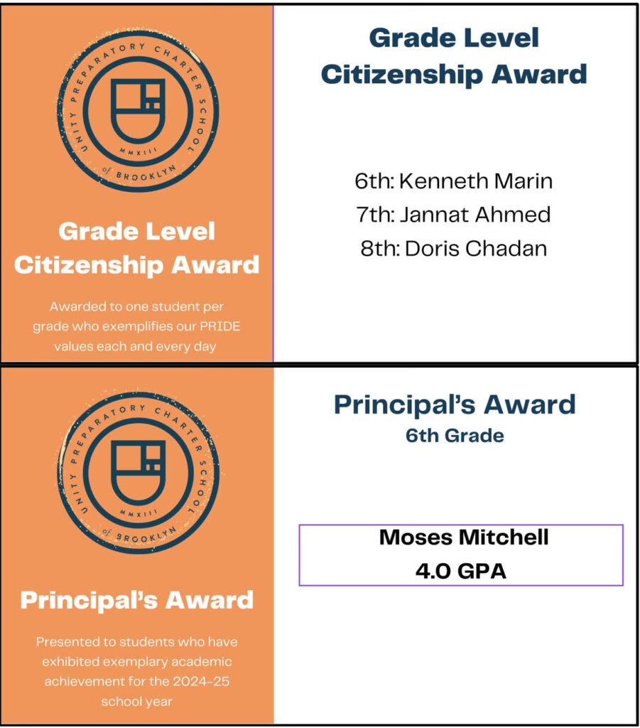 12. Updated – New Students for Fall 2025 – Unity Prep has a few seats available for rising 6th and 9th graders for the 2025-26 school year. Finding the right school can be tough, and our current families (you!) are the best advocates. If you know of any interested families, please reach out to Mr. Beckford via email or cell (862-294-0219). For any families that refer a new family, both will be given a $100 Amazon gift card for school supplies.