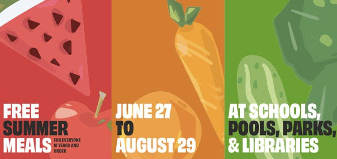 9. Recap – Free Summer Meals Start June 27th: NYC’s Summer Meals program, which offers free breakfast and lunch throughout NYC for anyone age 18 and under, will run from June 27th to August 29th. No registration, documentation, or ID is required. Learn more and find a location near you by clicking here.