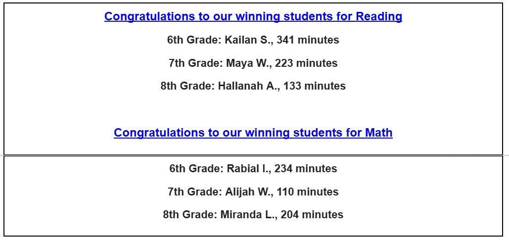 We are excited to recognize the winners of our January i-Ready Challenge! Throughout the month, students demonstrated #progress and #integrity as they worked to strengthen their academic skills.