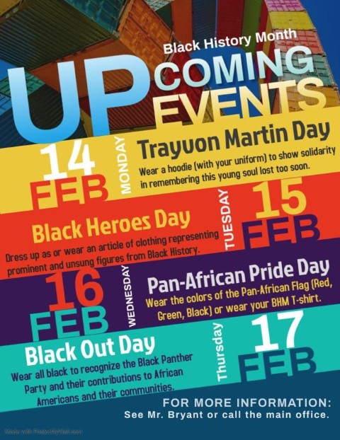 At Unity High, students and staff will also honor Black history this week with a host of events, including an Opportunity Fair and celebration on Friday in addition to a number of festivities detailed in the flier below.
