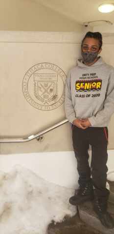 2. New – Unity‘s Alumni are On Campus!:  Now that spring semester at colleges has begun, some students are moving onto campus, including Unity Alumnus Nigel D.!  Nigel is one of three Unity graduates who attend Ithaca College (see the photo below).  The college was shut down in the fall for safety reasons, but they have opened up for the spring semester – and Nigel is now on campus!  We are excited for this next chapter for him and his fellow Unity Alumni/Ithaca classmates, Zariah F. and Tyrek B.  Please join us in wishing them and all of the other Unity Alumni a great, healthy semester!