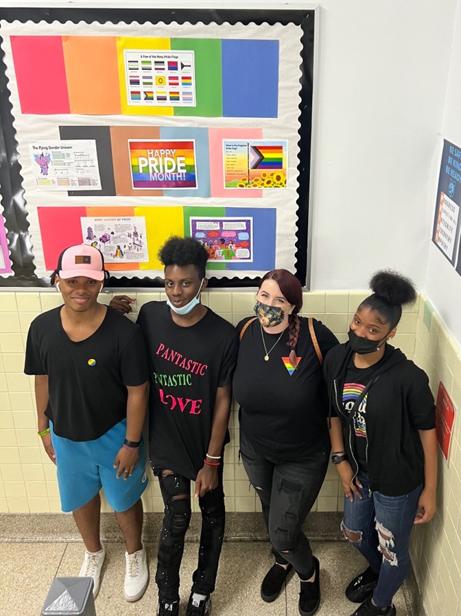 11. Recap – – Unity High’s Gay-Straight Alliance (GSA) Leads the Way during Pride Month!: Members of Unity High’s GSA are leading the way as we honor LGBTQ Pride Month as a school. In the photo, students and Ms. Marron pose in front of a community board they have decorated that offers educational information on the history of pride month as well as GSA-related vocabulary. Next week, the GSA will participate in the Brooklyn Pride parade on June 11th!