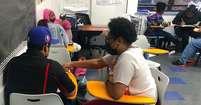 1. New – Students and Teachers in Action this Week: This week, we spotlight our 6th grade readers and writers and our 9th grade mathematicians. In the first photo below, Ms. Jenkins and members of a 6th grade book club discuss poems that they are currently reading as they prepare to create their own poems. In the second two photos, our 9th grade algebra students hone their math skills through practice in preparation for next week’s Regents exam under the tutelage of Ms. Moore, Ms. Louisma, and Ms. Terry. Love the effort and love the support!