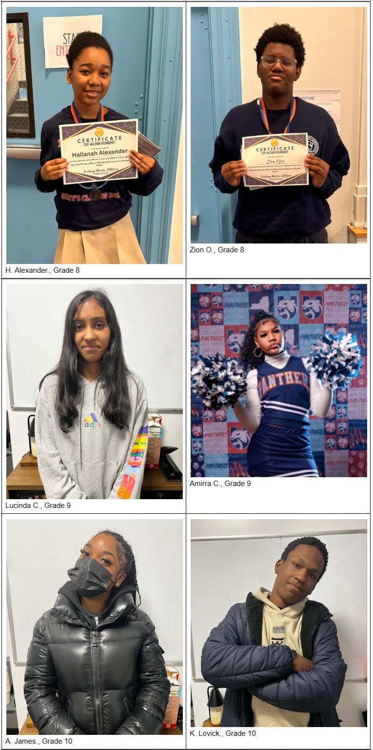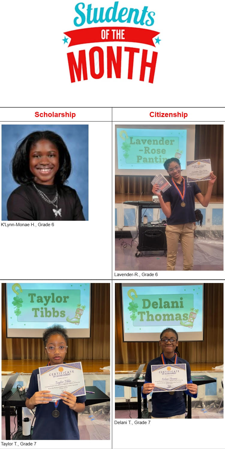 Kudos to our Students of the Month for February! We celebrate these students for showing exemplary scholarship and citizenship!