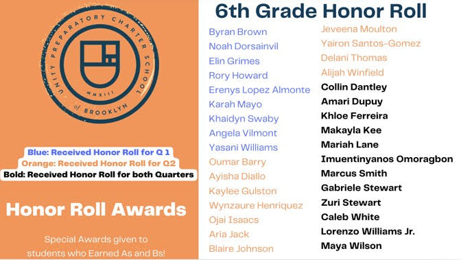 9. Recap – Congratulations to our Middle School Honor Roll Students for Semester 1! Congrats to our students in grades 6-8 who earned Honor Roll status in the first semester of the school year! Your consistent hard work, organization, and eagerness to learn things and develop new skills is paying off. Be proud of your accomplishments and stay the course!