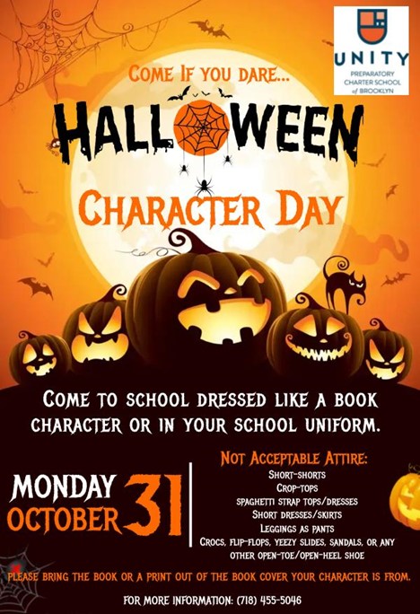 4. Updated – Halloween Events at Unity!: There are a number of festive events taking place over the coming weeks at Unity. Events include this past Wednesday’s Hallowsfest and this coming Monday’s Character Day at our middle school. They also include last night’s “Yoon-uh-tee” Haunted House extravaganza at Unity High. Enjoy the photos from Hallowsfest below as well as the flier for Character Day at Unity Middle!