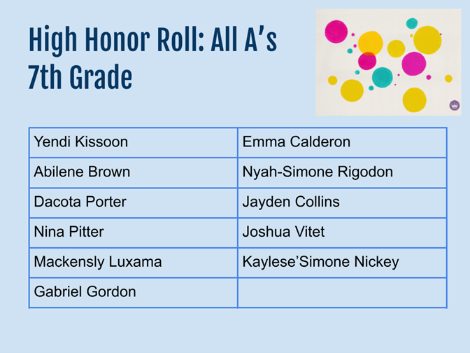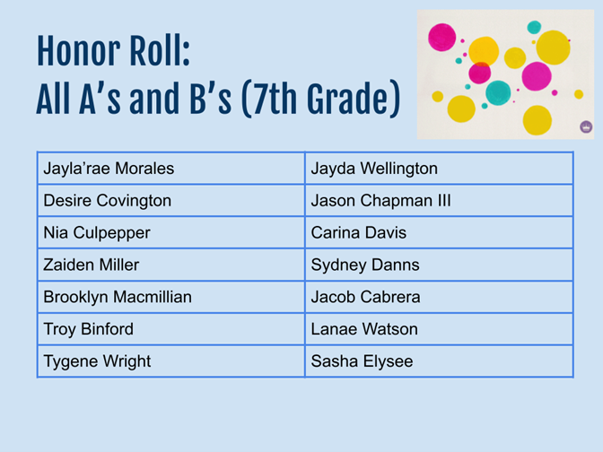 2. New – Congratulations to our Middle School Students who Made the Honor Roll in the Spring of 2021!  As we kick off the new year, it is important to recognize and celebrate the achievements of our students from this past spring.  During Thursday evening’s middle school Open School Night, we took a moment to congratulate our current 7th and 8th graders who earned Honor Roll status in Trimester III of last year.  Congrats honorees!  We look forward to celebrating our Trimester I Honor Roll students for this year in December!