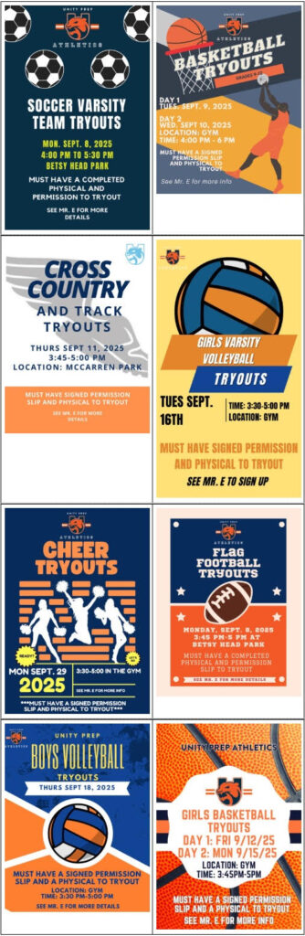 6. Updated – Become a Unity Student-Athlete by Joining One of our Athletic Teams this Fall!: We are excited to cheer on our Unity athletic teams this fall. Information on joining one of our fall teams is provided below. Questions about our middle school athletic program can be directed to Mr. Coleman. Questions about our high school athletic program can be directed to Coach Egharevba.